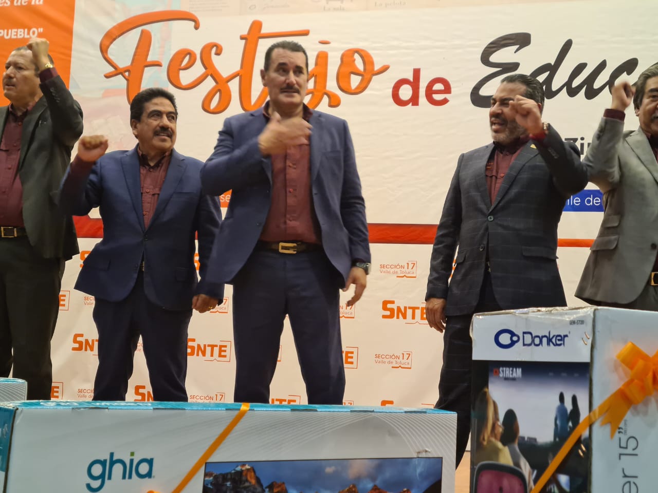 Zinacantepec, Estado de México, 8 de julio de 2025 .—La Sección 17 del Sindicato Nacional de Trabajadores de la Educación (SNTE), encabezada por el profesor José Alfredo Geraldo Benoit, celebró este día a las y los docentes de nivel básico con un evento multitudinario amenizado con la Banda el Limón, rifa de regalos y el sorteo de dos automóviles, en reconocimiento a su labor educativa en la región