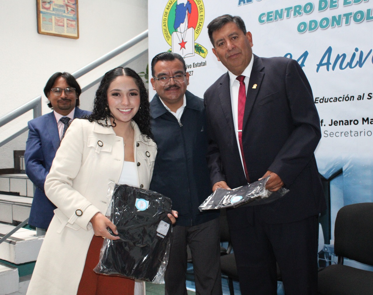 Durante la conmemoración, el Secretario General del SMSEM, Jenaro Martínez Reyes, entregó equipo de alta tecnología para mejorar los servicios del centro, incluyendo un microscopio odontológico y lámparas de fotocurado, así como uniformes para el personal, que suma cerca de 80 profesionales distribuidos entre el C.Es.O y sus 14 sedes regionales.