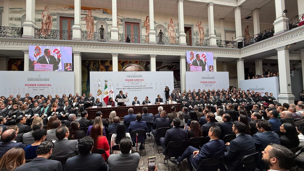 Este viernes, el Poder Judicial del Estado de México inició una etapa inédita con la toma de protesta de 91 personas electas para conformar su nuevo Pleno. Héctor Macedo García asumió la presidencia del Tribunal Superior de Justicia del Estado de México (TSJEM), acompañado por 30 magistradas y magistrados, cinco integrantes del Tribunal de Disciplina Judicial y 55 juezas y jueces. La ceremonia se llevó a cabo en el marco del segundo año de ejercicio constitucional de la LXII Legislatura local, con la presencia de la gobernadora Delfina Gómez Álvarez y representantes de distintos grupos parlamentarios.