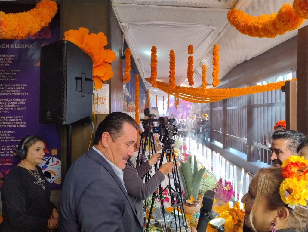 Toluca, Estado de México, 29 de octubre de 2025. – La Sección 17 del Sindicato Nacional de Trabajadores de la Educación (SNTE) en Toluca inauguró una ofrenda mazahua de Día de Muertos que destacó por su monumentalidad y simbolismo. El acto estuvo encabezado por José Alfredo Geraldo Benoit, secretario general de la sección, y reunió a docentes, autoridades educativas y representantes del sindicato a nivel nacional.