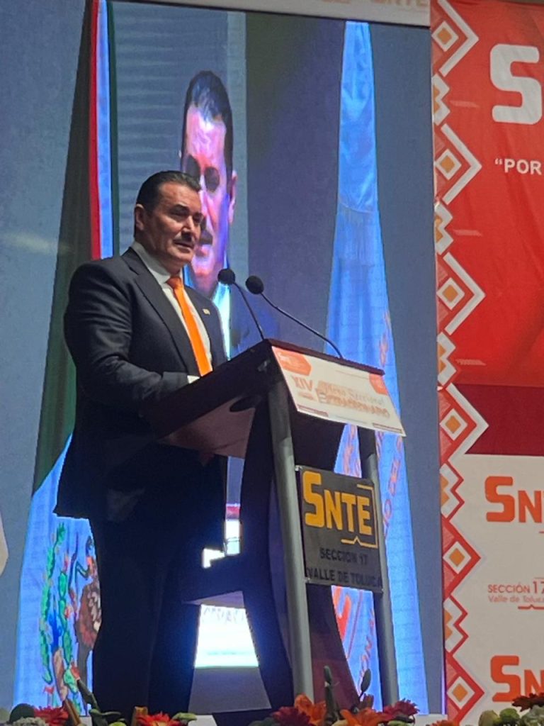 Completaron la mesa de honor legisladores locales y federales, así como dirigentes de organismos sindicales del sector educativo y universitario de la entidad, entre ellos el Mtro. Jenaro Martínez Reyes del SMSEM, el Dr. Magdaleno Reyes Ángeles de los SEIEM y el Prof. Antonio Duarte Franco, representante del Secretario General del SUTEYM.