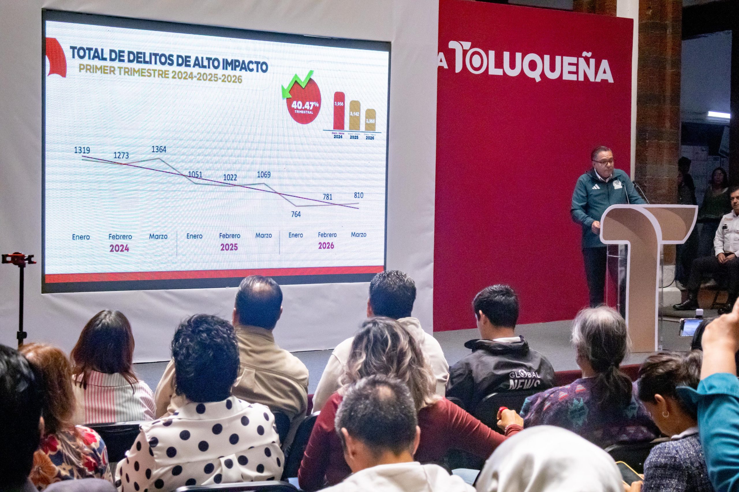 El gobierno municipal de Toluca informó que durante el primer trimestre de 2026 se registró una disminución del 40.47% en delitos de alto impacto, en comparación con el mismo periodo de 2024 y 2025, de acuerdo con cifras presentadas por el alcalde Ricardo Moreno.